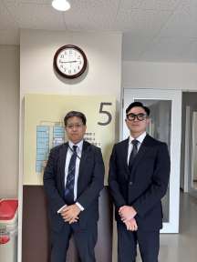 R8年度合同会社説明会に参加された三菱重工株式会社 角田昻駿氏が来室されました。写真 ご立派な社会人になられてうれしい限りです。ますますのご活躍を祈念いたします。